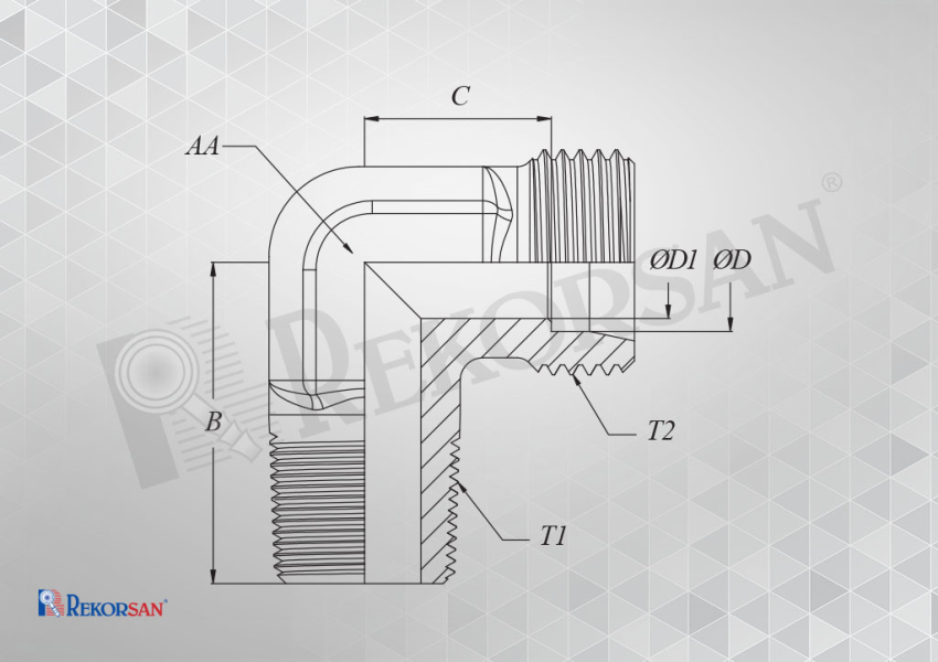 | MALZEME KODU MATERIAL CODE | DİŞ ÖLÇÜSÜ THREAD SIZE T1 | DİŞ ÖLÇÜSÜ THREAD SIZE T2 | B | C | ØD | ØD1 | AA |