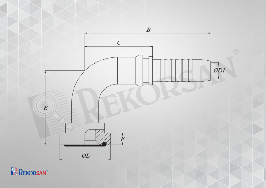 | MALZEME KODU MATERIAL CODE | HORTUM ÖLÇÜSÜ HOSE SIZE | FLANŞ ÖLÇÜSÜ FLANGE SIZE ØD | B | C | E | F | ØD1 | |