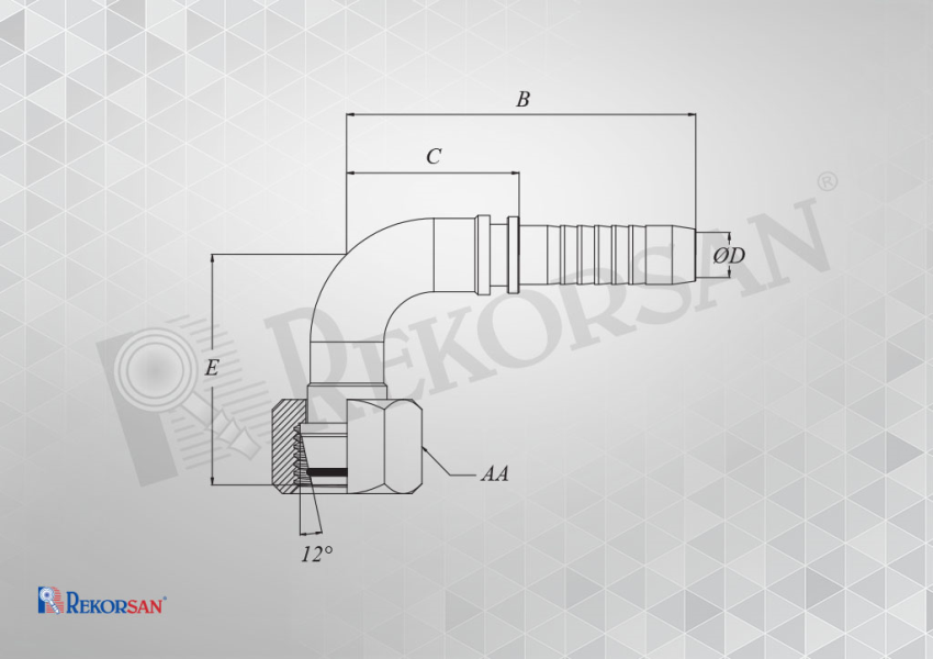 | MALZEME KODU MATERIAL CODE | HORTUM ÖLÇÜSÜ HOSE SIZE | SOMUN ÖLÇÜSÜ NUT SIZE | B | C | E | ØD | AA | |