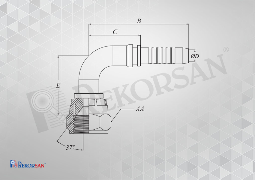 | MALZEME KODU MATERIAL CODE | HORTUM ÖLÇÜSÜ HOSE SIZE | SOMUN ÖLÇÜSÜ NUT SIZE | B | C | E | ØD | AA | |