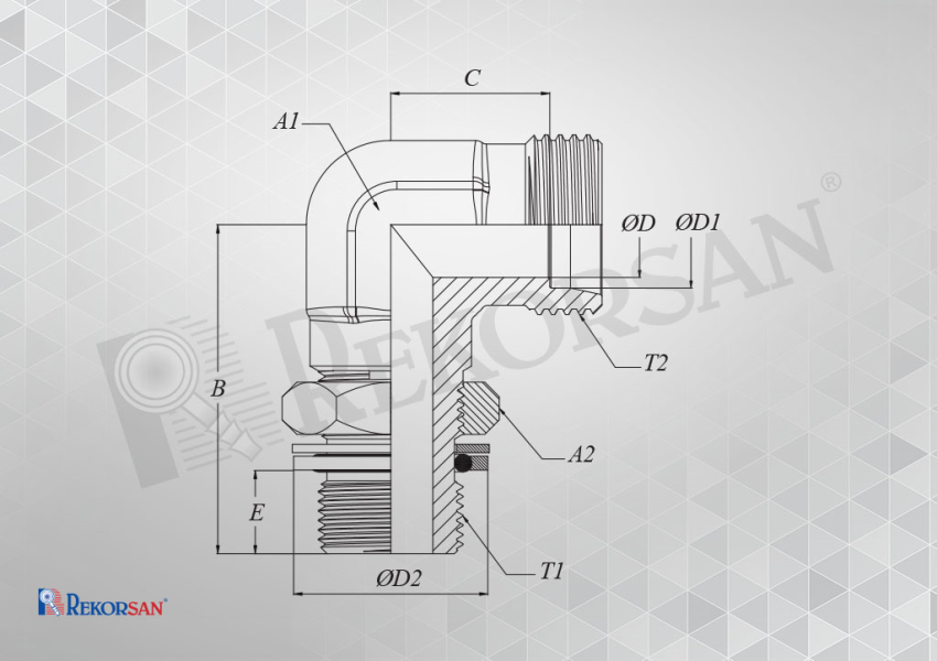 | BSP - METRİK 90° KONTRALI DİRSEK METRIC 24° CONE - ADJUSTABLE BSP THREAD - O-RING + RETAINING RING | ||||||||||