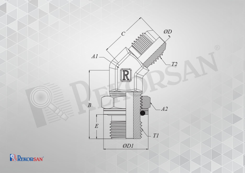 | BSP - UNF 45° KONTRALI DİRSEK UNF 37° FLARE - ADJUSTABLE BSP THREAD - O-RING + RETAINING RING | |||||||||