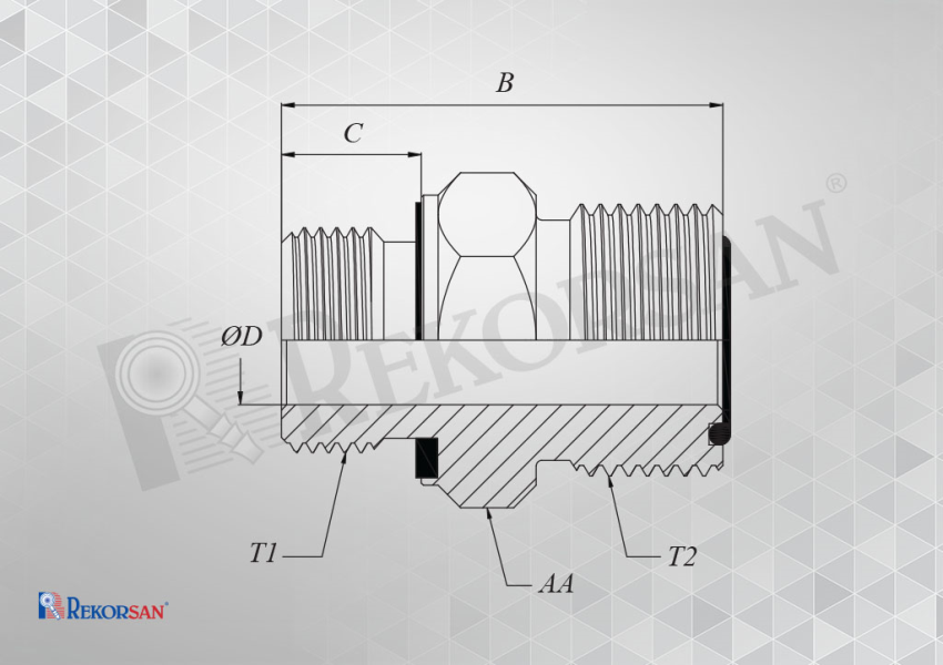 | MALZEME KODU MATERIAL CODE | DİŞ ÖLÇÜSÜ THREAD SIZE T1 | DİŞ ÖLÇÜSÜ THREAD SIZE T2 | B | C | ØD | AA |