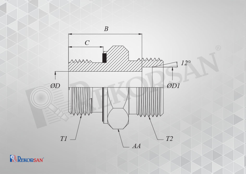 MALE METRIC WITH ELASTOMERIC SEAL  -  METRIC 24° CONE NIPPLE