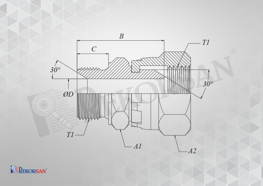 | MALZEME KODU MATERIAL CODE | DİŞ ÖLÇÜSÜ THREAD SIZE T1 | DİŞ ÖLÇÜSÜ THREAD SIZE T1 | B | C | ØD | A1 | A2 |